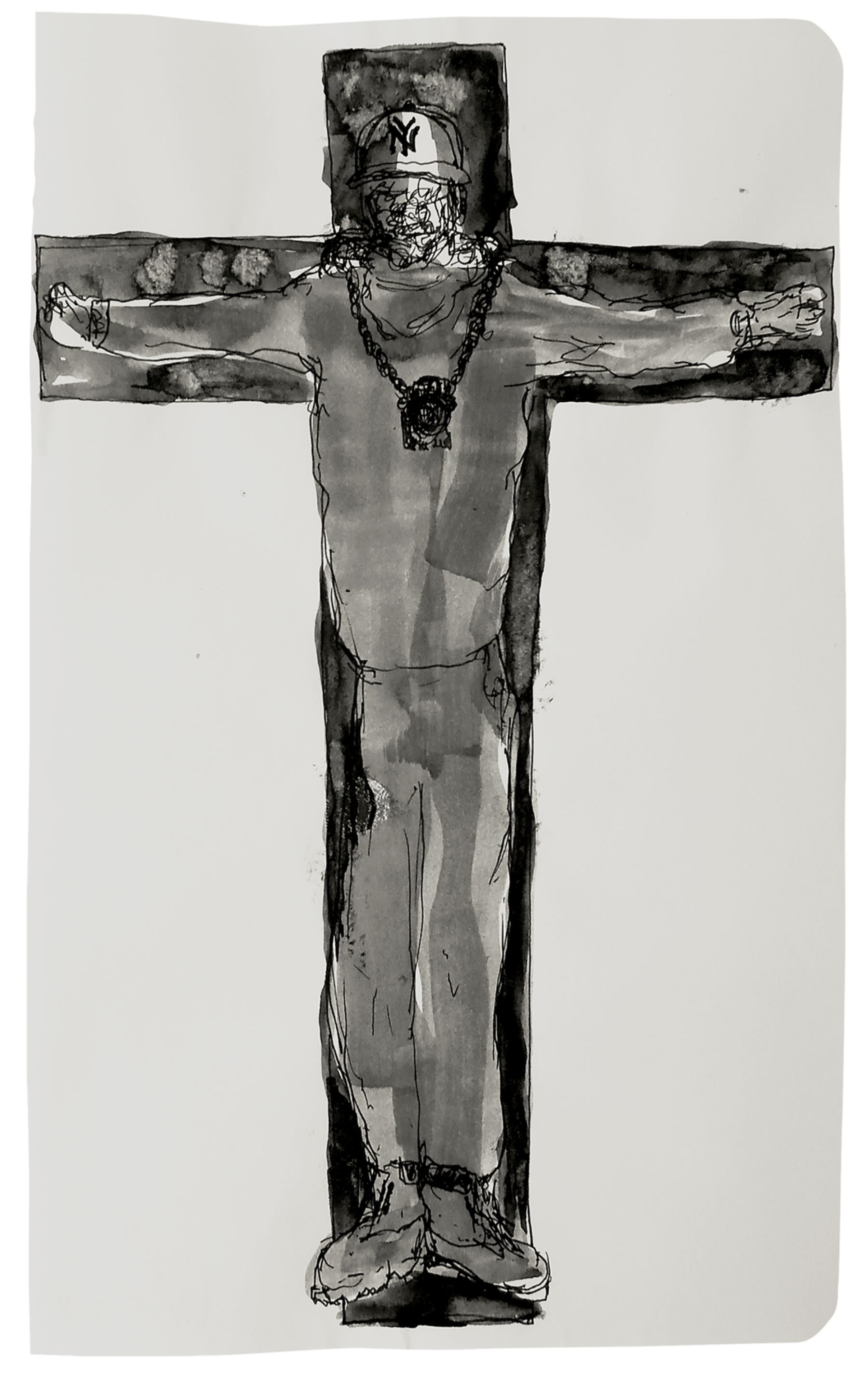 Alvaro Barrington, Jesus Piece, 2020, Ink, gouache, and pencil on paper, 7 3/4 x 5 inches (19.6 x 12.7 cm), Courtesy of the artist