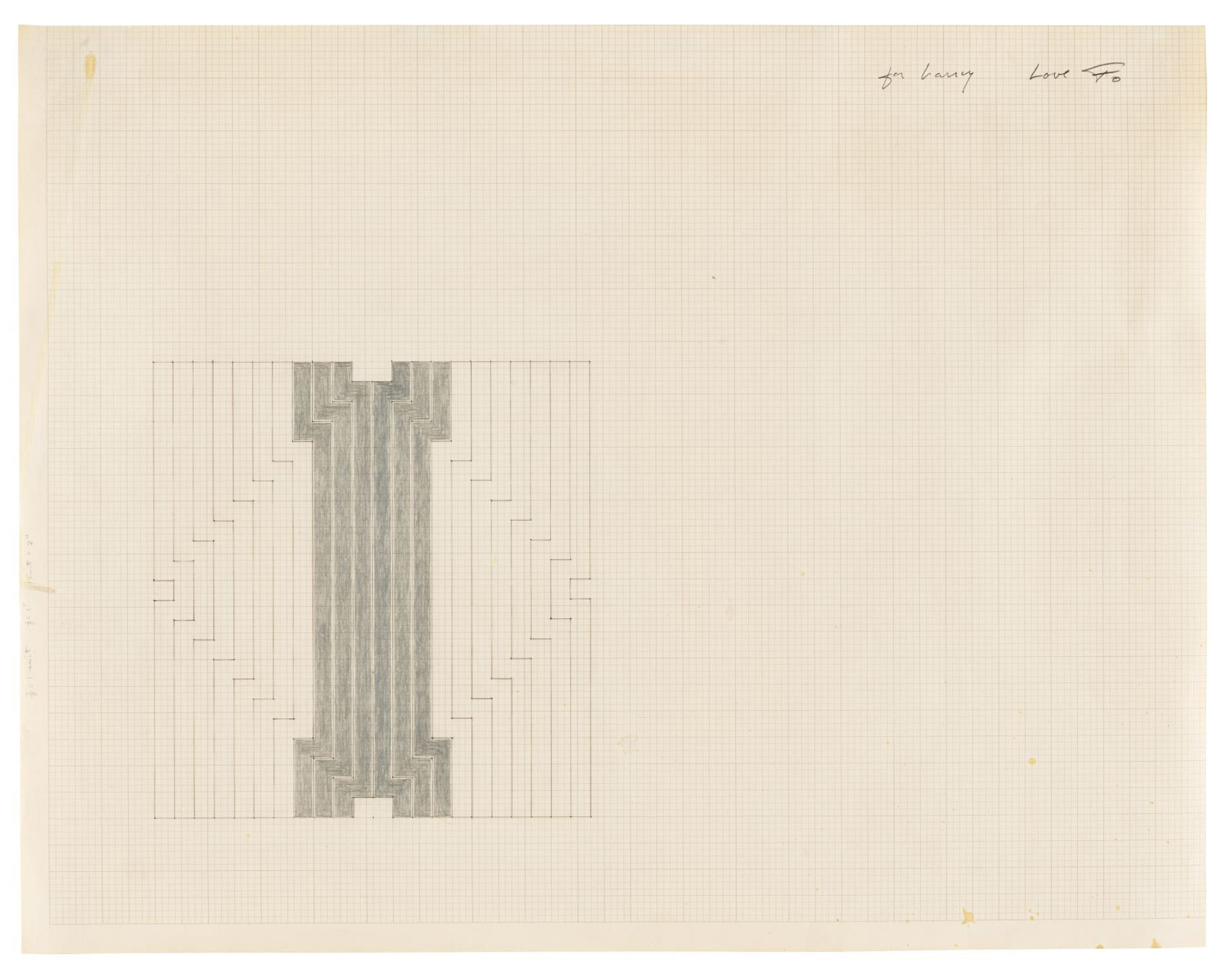 Frank Stella, Marquis de Portago, 1960. Graphite and aluminum paint on graph paper, 17 1/2 x 22 1/2 inches (44.5 x 57.2 cm). Jack Shear Collection © 2021 Frank Stella / Artists Rights Society (ARS), New York.